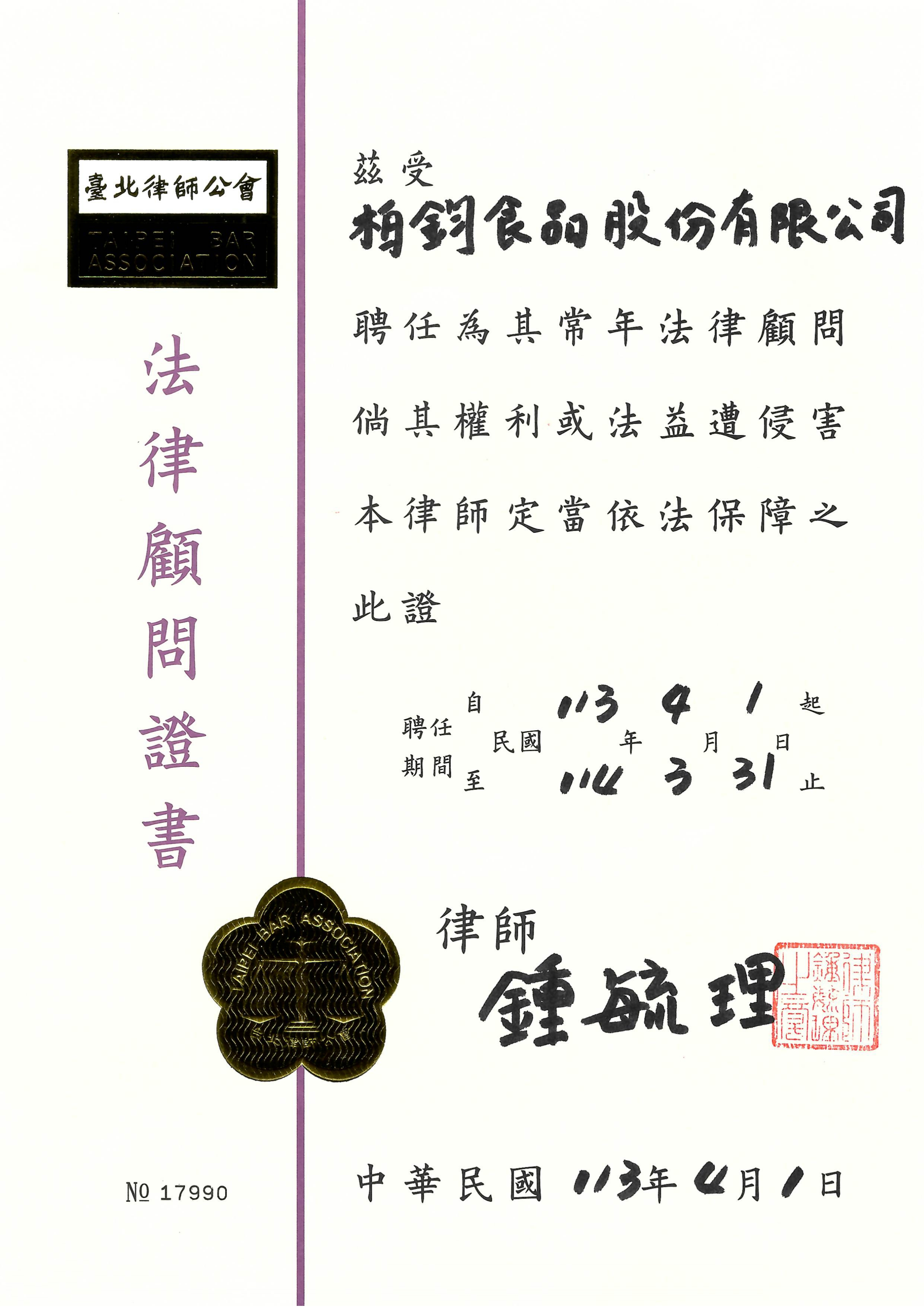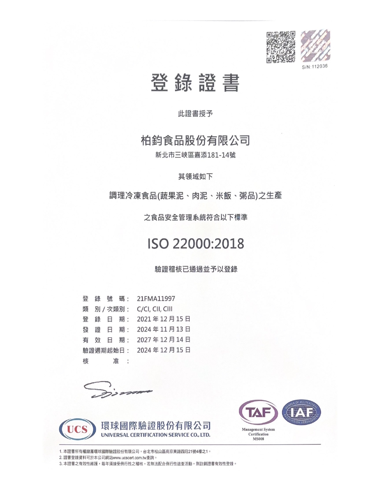 公司登記:柏鈞食品股份有限公司