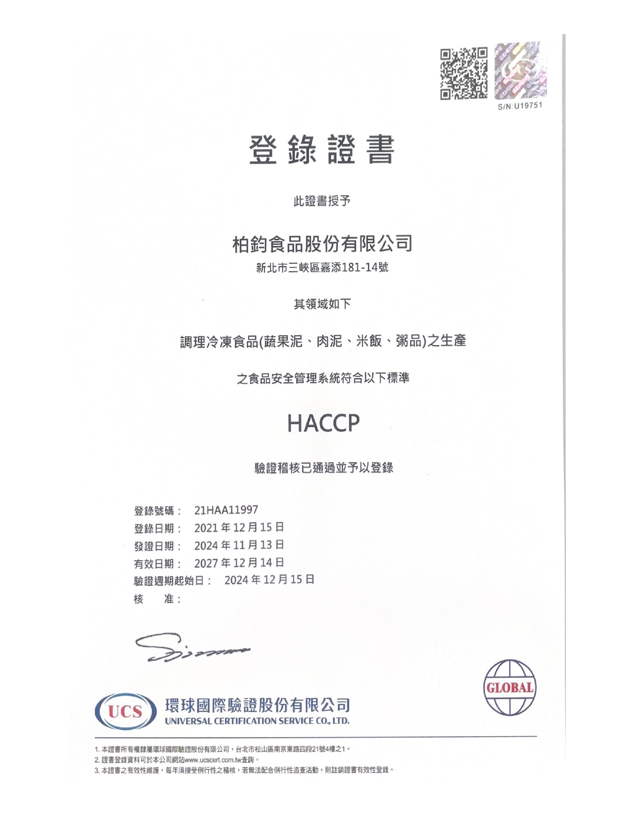 HACCP、ISO22000食品安全驗證通過