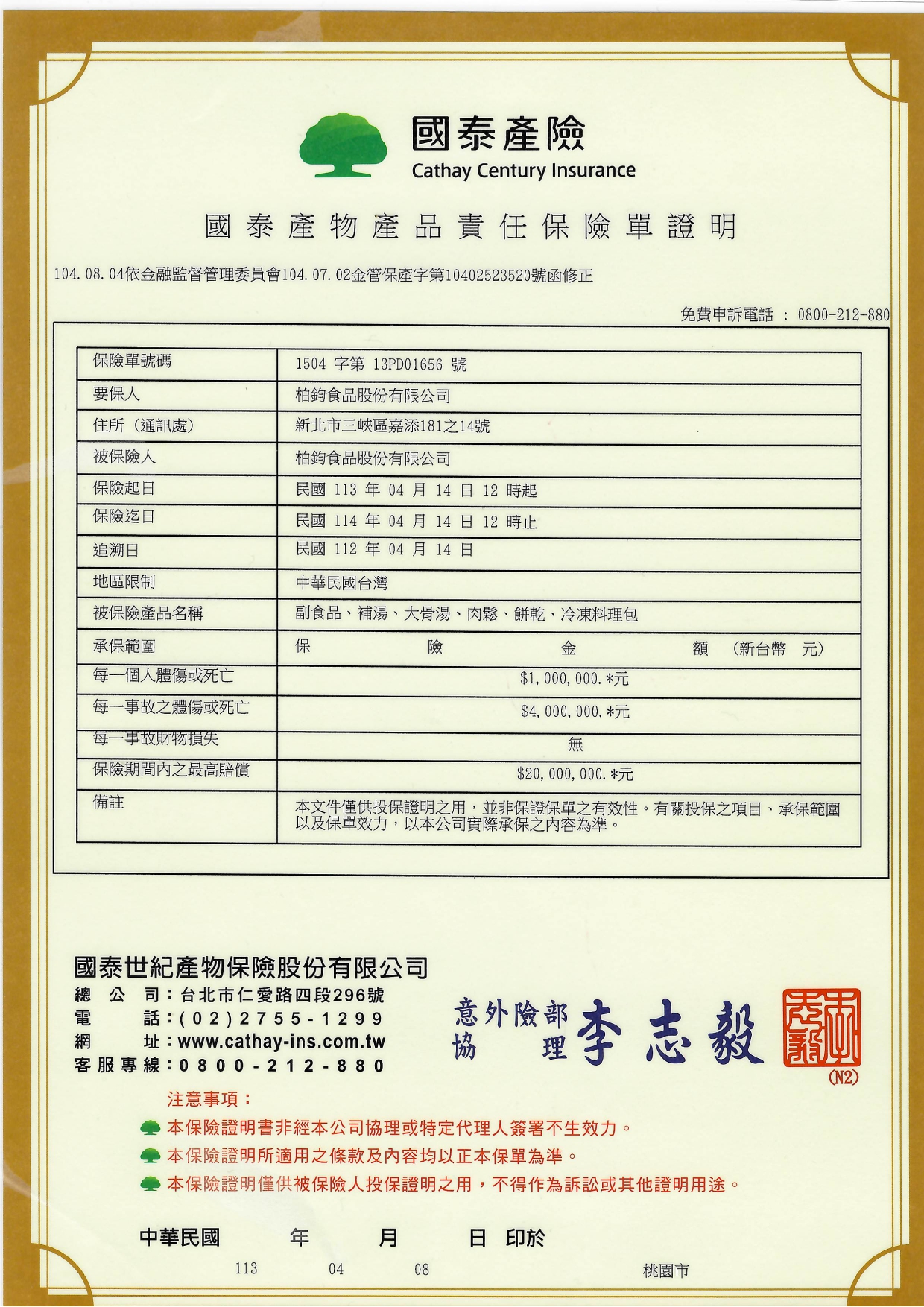產品責任險、證書